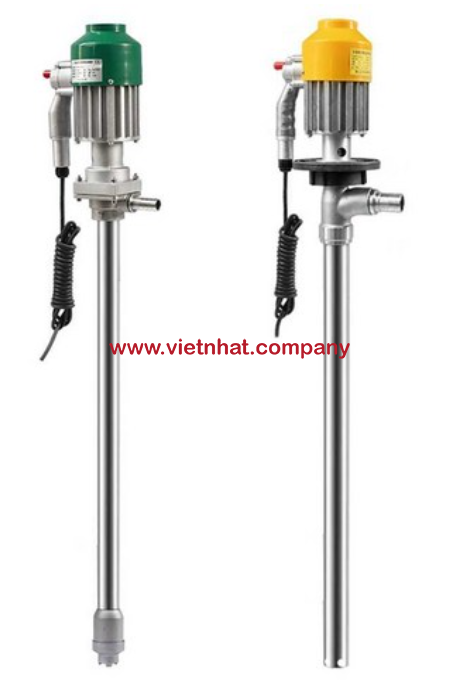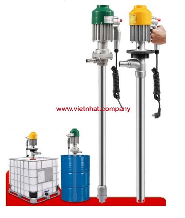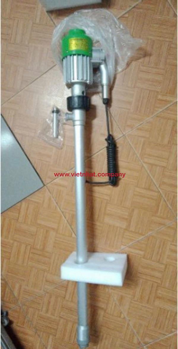 Chiều dài ống lên đến 880mm giúp máy dễ dàng tiếp cận đáy thùng phuy 200L, đảm bảo hút sạch chất lỏng.