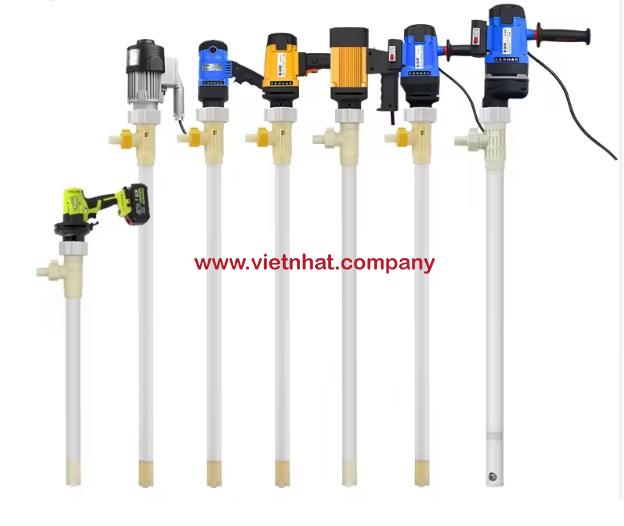 Máy được thiết kế theo dạng trục đứng, cho phép cắm trực tiếp vào thùng chứa mà không cần hệ thống hút phức tạp. Cấu trúc tổng thể gồm ba phần chính là động cơ, trục truyền động và cụm bơm đặt trong ống bơm.