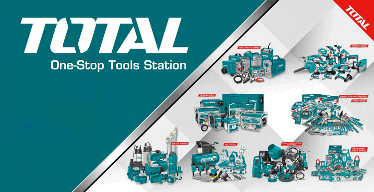 Total Tools là thương hiệu mới được nhập khẩu vào thị trường Việt Nam, hứa hẹn sẽ mang đến nhiều trải nghiệm mới cho giới xây dựng và cơ khí. Total là thương hiệu nổi tiếng thế giới cung cấp dụng cụ dân dụng, dụng cụ cầm tay và các máy móc dùng điện, thiết bị an toàn cho gia đình và nhiều công trường xây dựng. Nhãn hiệu Total Tools có nguồn gốc ở Đức và được sản xuất tại Trung Quốc theo các tiêu chuẩn chất lượng của Mỹ, Châu Âu.