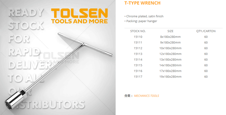 Tolsen 15114 thường xuyên xuất hiện tại các gara, tiệm sữa chữa xe máy, ô tô, bảo trì máy móc, là công cụ chuyên dụng cho công việc vặn siết, tháo mở bu lông đai ốc.Sản phẩm được gia công tỉ mỉ bằng quy trình công nghệ hiện đại, chất lượng và nguyênliệu thép rắn chắc, sáng bóng, bền bỉ.