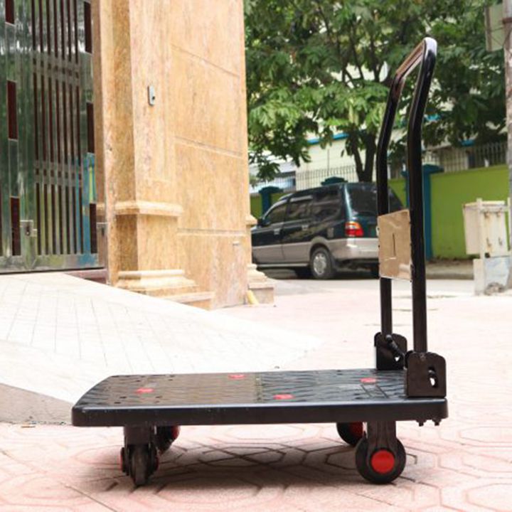 - Tay cầm có chiều cao phù hợp với chiều cao của người sử dụng không quá cao không quá thấp sử dụng đảm bảo tạo cảm giác thoải mái cho người dùng. Tay cầm được làm từ thép cứng độ bền cao và không biến dạng khi chở hàng nặng.