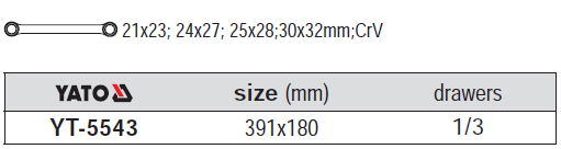 Khay bộ cờ lê 2 đầu tròng hệt mét YT-5543 là sản phẩm do hãng Yato Ba Lan sản xuất theo tiêu chuẩn Châu Âu. Sản phẩm không thể thiếu dành cho việc sửa chữa, bảo dưỡng ô tô, xe máy, máy móc, các thiết bị công nghiệp.