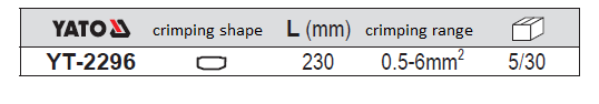Kìm bấm cos YT-2296 là sản phẩm mang thương hiệu Yato Ba Lan, sản xuất theo tiêu chuẩn Châu Âu, tích hợp nhiều tính năng hỗ trợ việc bấm 1 đầu mạng mà không cần bất kỳ dụng cụ nào khác gồm :
