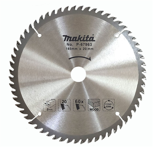 Lưỡi cưa cắt gỗ Makita P-67963 có kích thước 185 x 20 x 60T, sản phẩm thích hợp với các dòng máy cắt sử dụng lưỡi cắt đường kính 185mm và có 60 răng có khả năng cắt các vật liệu bằng gỗ và nhôm, thích hợp sử dụng trong các ngành nghề chế tạo, cơ khí, xưởng mộc...Đĩa cắt gồm nhiều răng nhỏ giúp cắt nhanh và ít hao vật liệu hơn. Hơn nữa, răng cắt có cấu tạo hình học tối ưu giúp cắt những sản phẩm mượt và sạch.