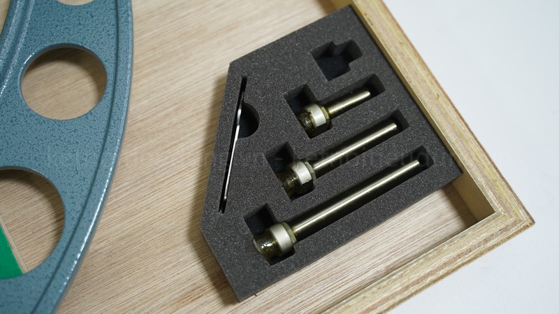 - Phân cách bề mặt đo của Panme từ 0.1-1mm và không khoá bộ phận di chuyển.