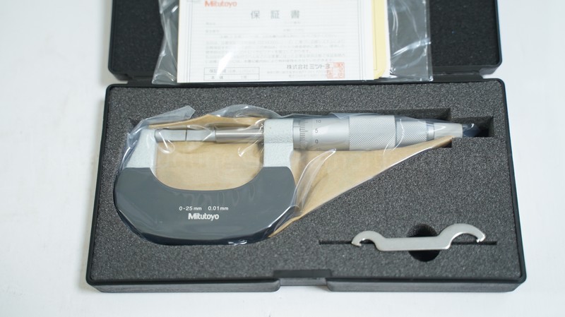 - Panme đo ngoài cơ khí với dải đo 0-25mm, độ chia là 0.01mm. Là dụng cụ đo lường hữu ích cho việc phải thực hiện chính xác cao. Đơn vị hệ mét để đo chính xâc đường kính ngoài OD.