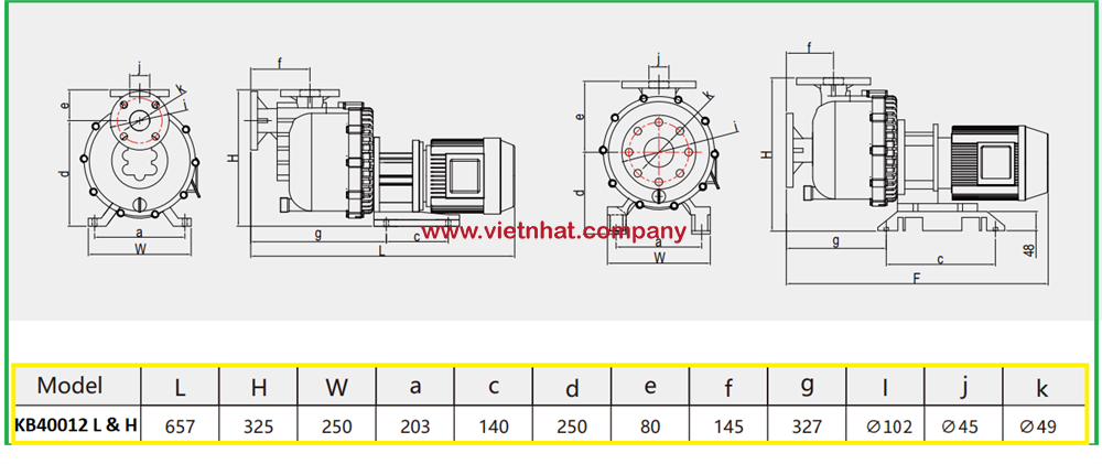 Bản vẽ lắp đặt của bơm KB40012