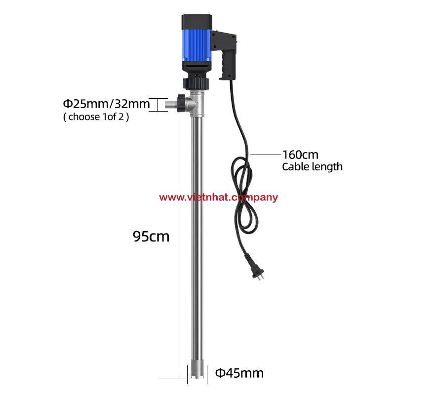 Chiều dài trục khoảng 1,2 m phù hợp thùng phuy 200 lít.