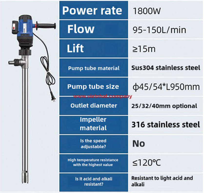 Máy bơm thùng phuy nhiệt độ cao JDT-1800W-G120 là thiết bị chuyên dùng để bơm các loại chất lỏng có nhiệt độ cao và độ nhớt trung bình trong công nghiệp, thực phẩm và hóa chất nhẹ. Để đảm bảo an toàn, hiệu suất làm việc và tuổi thọ thiết bị, người vận hành cần tuân thủ đúng quy trình vận hành chuẩn.
