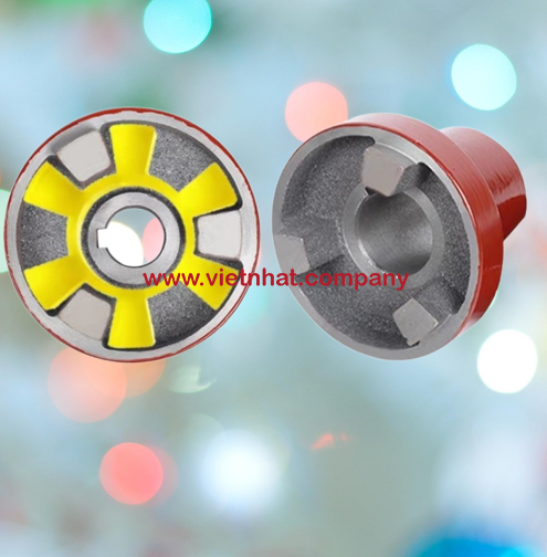 Hình ảnh tham khảo khớp nối mềm mầu đổ có nhựa mầu vàng ở giữa loại trục 28mm cavet 8mm