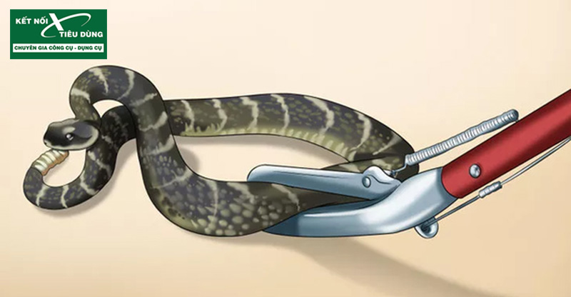 Hãy sử dụng gậy dài/kẹp bắt rắn, tuyệt đối không dùng tay không vì có thể rắn có độc