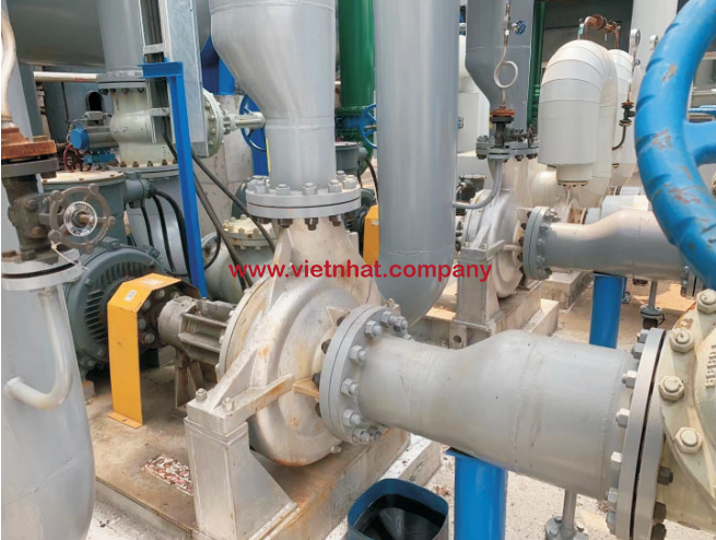 Hình ảnh máy bơm dầu truyền nhiệt RY150-150-200A lắp đặt vào hệ thống đường ống