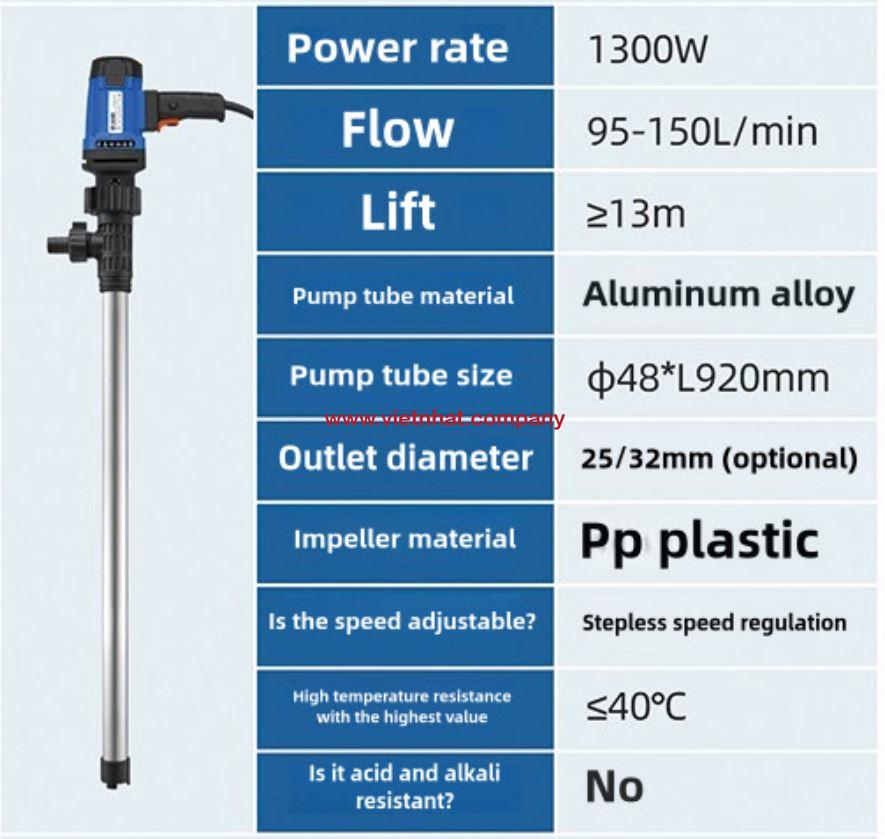 Thông số Bơm điện cầm tay bơm chất lỏng JDT-1300W-L92