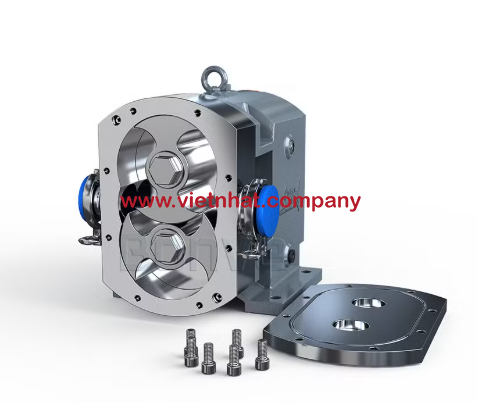 Bơm gồm hai cánh khế hình elip hoặc ba cánh khế quay đồng bộ trong buồng bơm, không tiếp xúc nhau. Khi cánh quay, chất lỏng được giữ giữa cánh và thành bơm, đẩy ra đầu xả với áp lực ổn định. Cấu tạo không ma sát, không cắt gãy sản phẩm, rất phù hợp để bơm socola nóng, kẹo, mật ong hoặc sữa đặc.