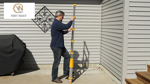 - Thang nhôm chữ A bạn không nên sử dụng trên bậc thang vì không có điểm tựa, nếu xảy ra sự cố sẽ dễ bị mất thăng bằng. Khi xuống thang, bạn không nên trượt hoặc nhảy xuống, kể cả khi bạn đã bước tới gần mặt đất.