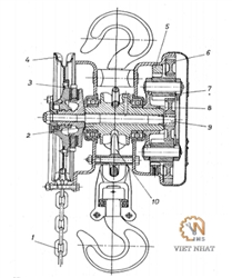 Sơ đồ cấu tạo Pa lăng xích kéo tay kiểu bánh răng