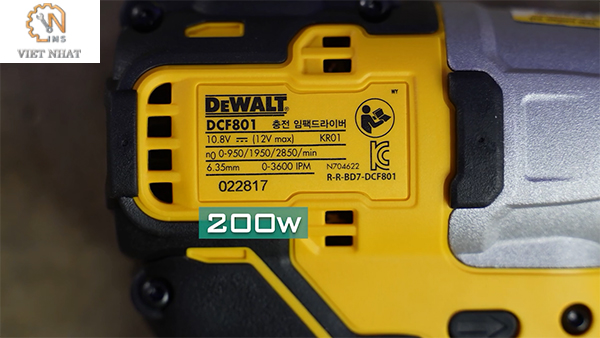 - Máy bắn vít Dewalt DCF 801 sử dụng pin 12V cho ra công suất 200W. Nhịp búa đập tối đa là 3600 lần/ phút. Lực vặn của máy lên đến 160Nm, rất mạnh mẽ so với những con máy bắn vít 12V khác trên thị trường. Con máy xài động cơ không chổi than hoạt động mạnh mẽ giúp tiết kiệm pin và tối ưu về mặt thiết kế.
